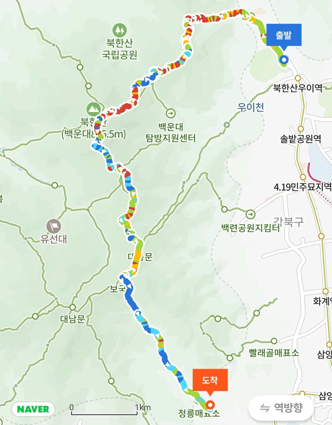 코스: 우이동 - 육모정고개 - 영봉 - 백운동암문 - 대동문 - 보국문 - 정릉 청수계곡 (약 12km)
