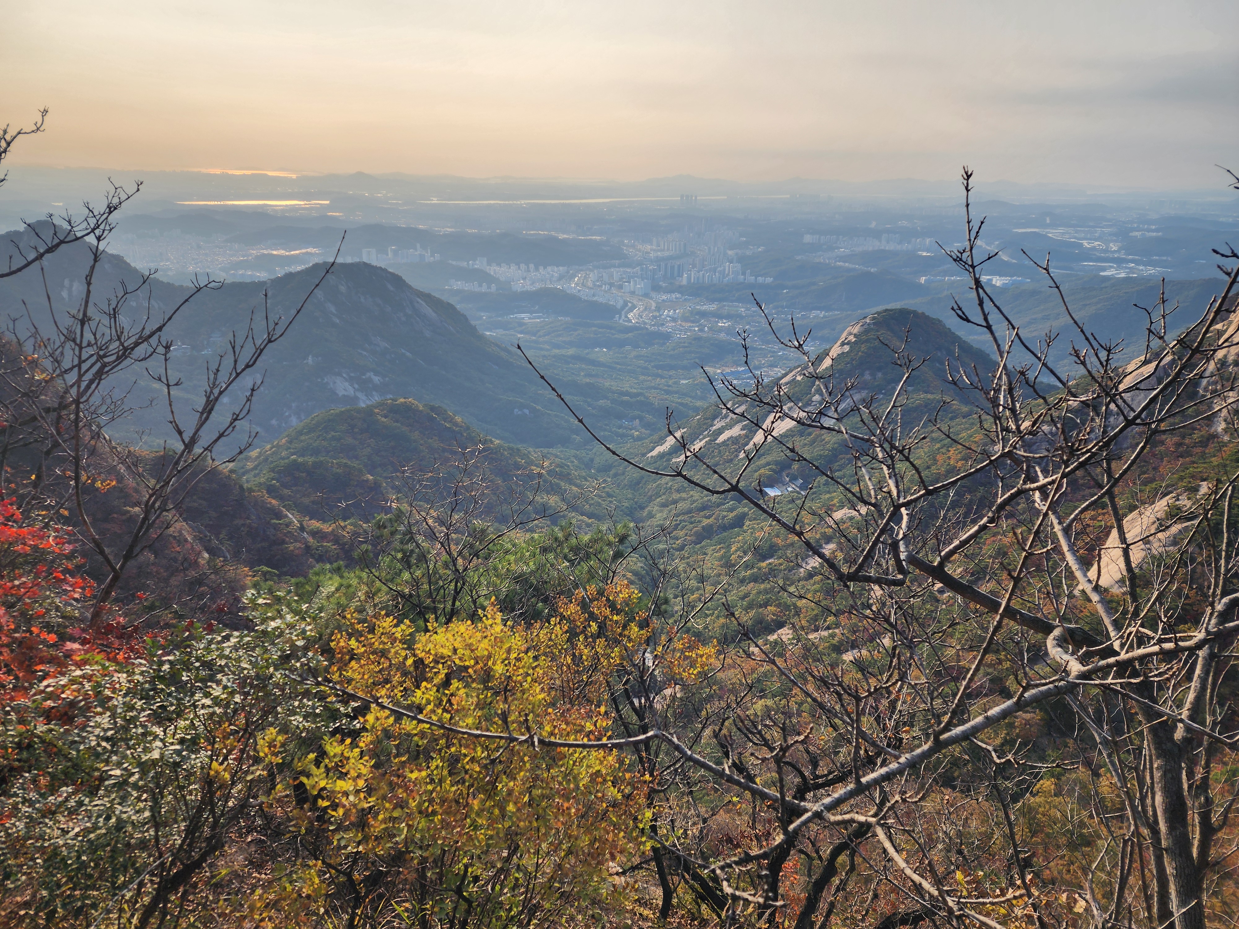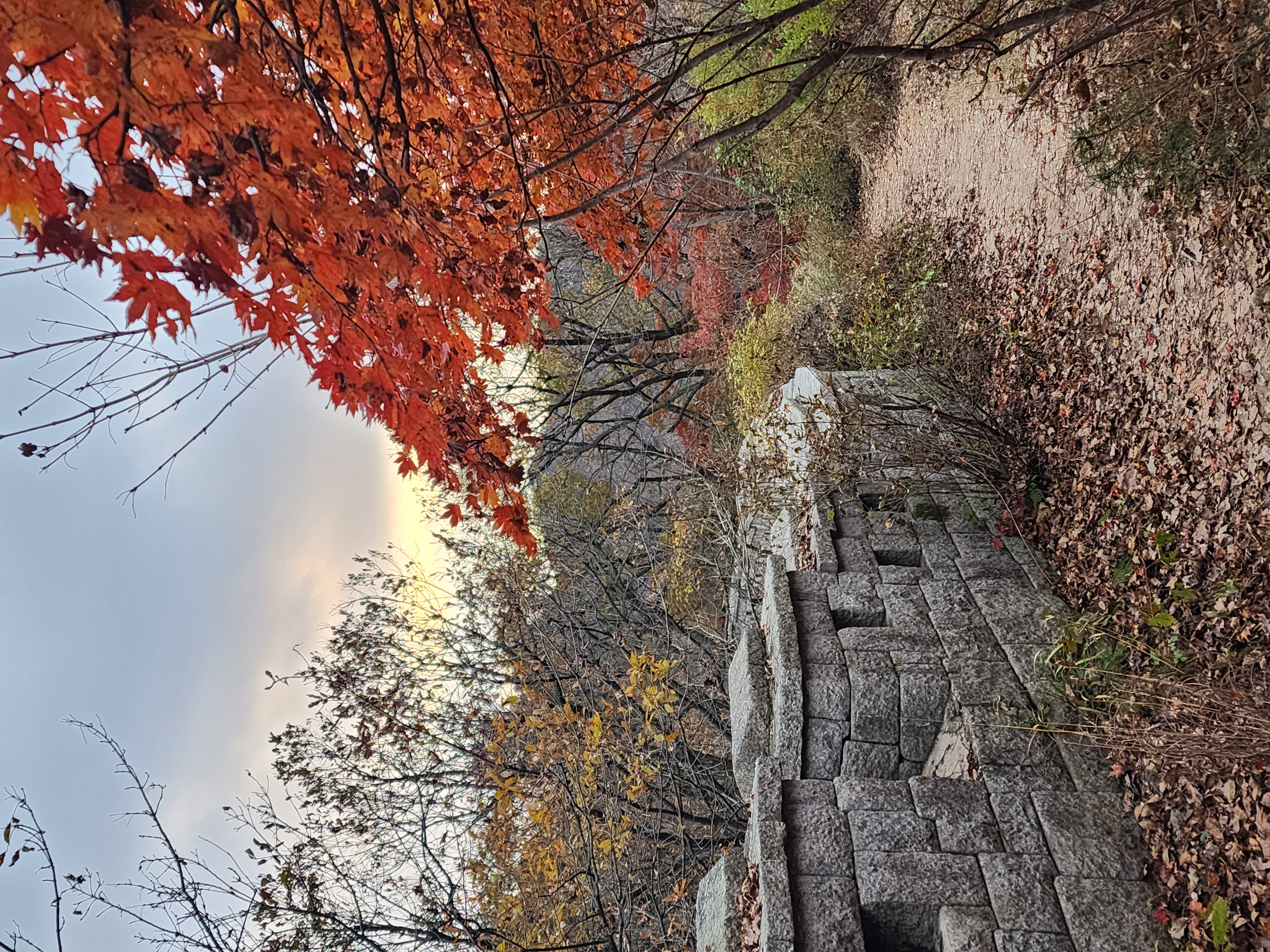 백운동암문에서 백운대는 지나치고 만경대 아래로 향한다. 만경대를 돌아가 용암봉암문까지 이어지는 길을 걸으면 백운동계곡, 노적봉, 의상능선, 원효능선에 감탄하며 걷는 길이다. 게다가 오늘은 붉게 물든 단풍 천국이다. 사진 기술이 늘어났고 영상이 보편화되었지만 풍광은 보는 게 아니라 체험하는 것이다. 에너지와 시간을 투자어느덧 서쪽 하늘도 붉은빛으로 저물어 가고, 숲도 붉은빛으로 저물어 가는데, 내 머리카락은 단풍철을 지나쳐 설경이 되고 있다.