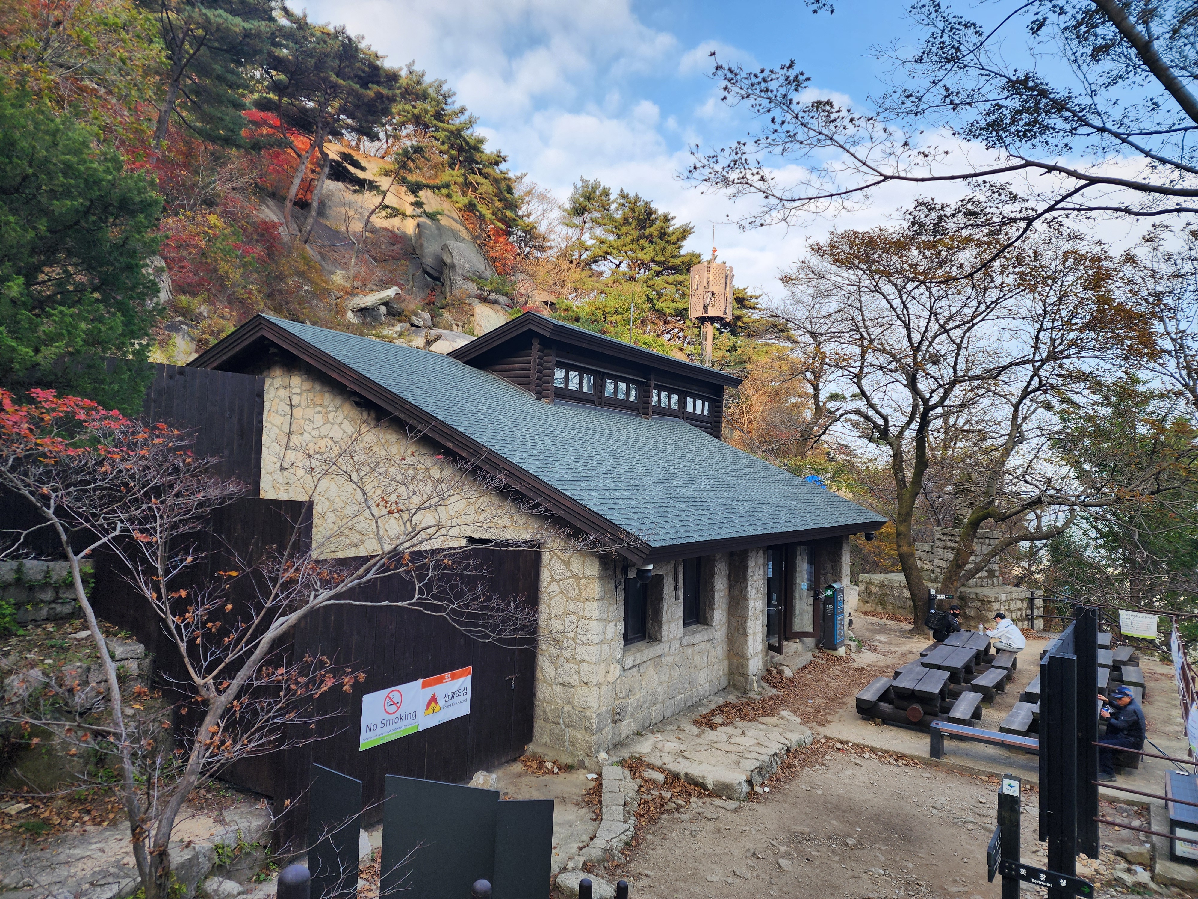 영봉을 내려와 2시간 만에 하루재에 도착한다. 계획 대로 우이동으로 바로 내려갈까? 더 걸을까? 잠시 고민하다 백운동암을 지나 정릉 청수계곡으로 내려가기로 한다. 산에 다니며 욕심을 많이 내려놓으려 하는데, 아름다운 산속에 더 오래 머무르고 싶은 욕심은 버리기 힘들다. 우이암을 지나 오르는 길에는 단풍이 아기자기하게 물들어 있다. 작년에 아이와 올랐던 길, 올해 숨은벽을 너머 내려왔던 길인데, 같은 길이라도 계절에 따라 분위기가 다르다.