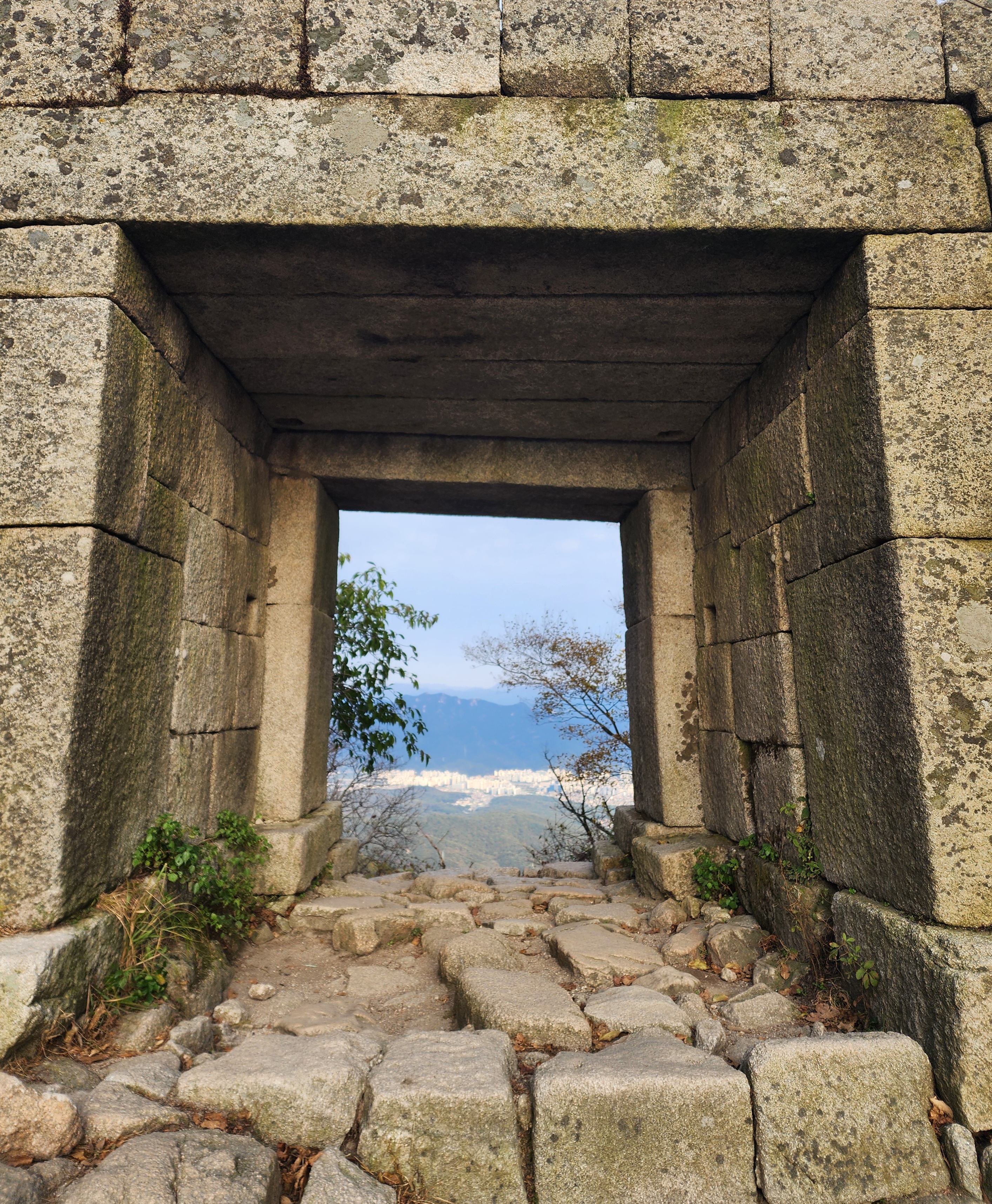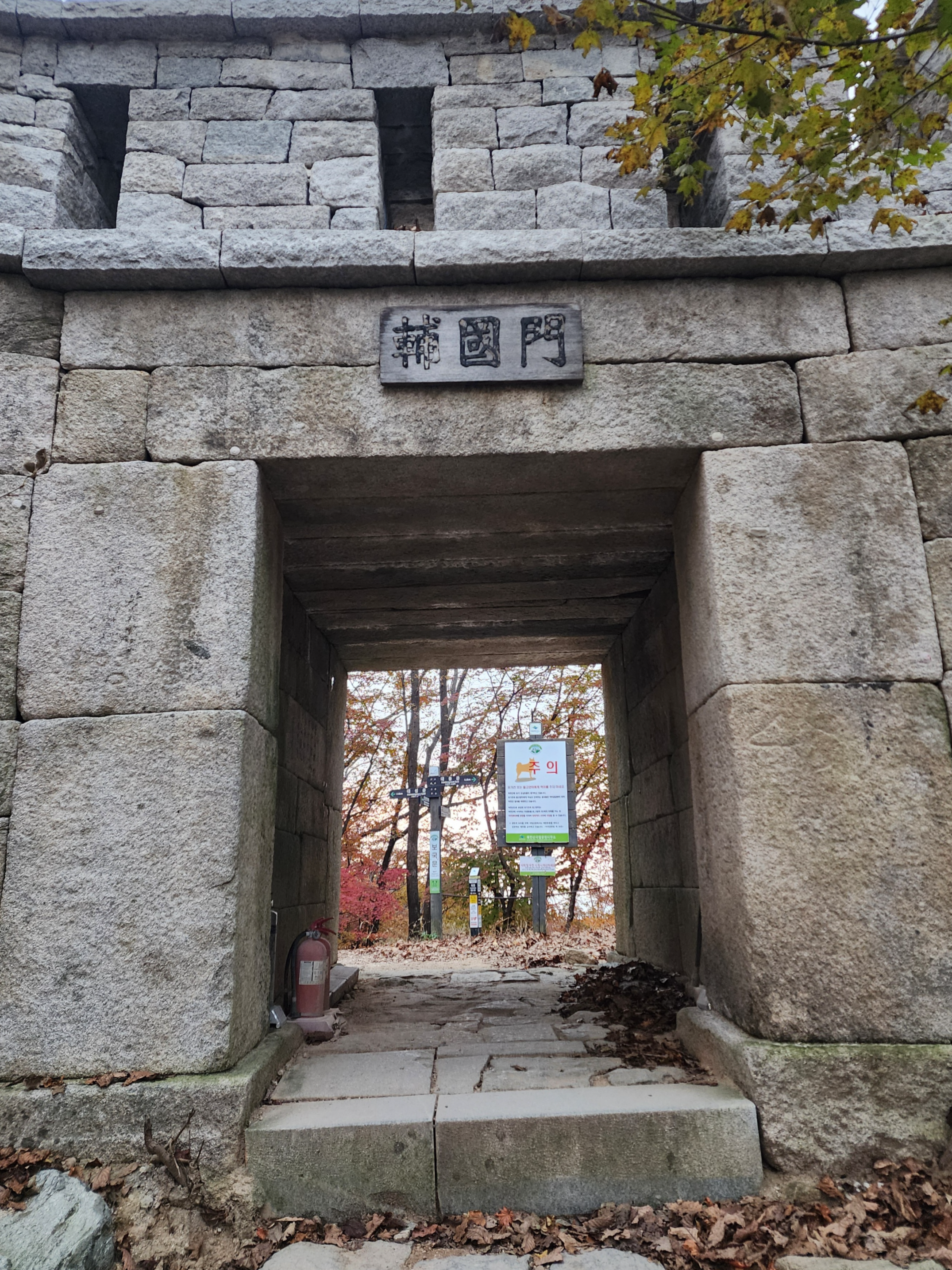 북한산성을 따라 빠르게 걷는다. 시간 여유가 많지 않다. 수리 중인 동장대를 지나 도착한 대동문은 적막만이 흐른다. 대동문에 여러 번 올랐지만 아무도 없는 대동문은 오늘이 처음이다. 칼바위 능선 갈림길을 지나 보국문에 도착하여 나무 사이로 백운대를 찾아보고는, 청수계곡으로 내려간다.