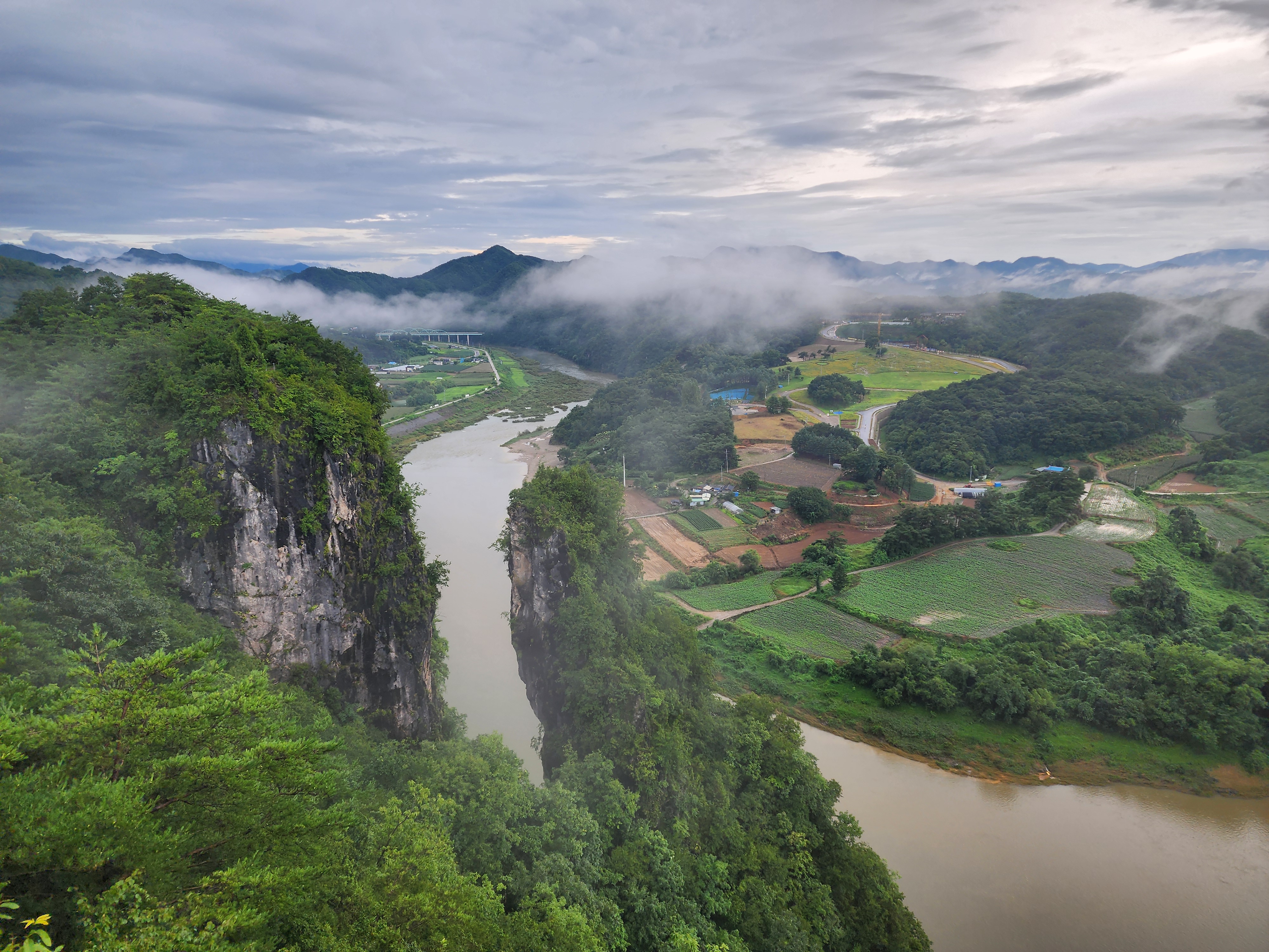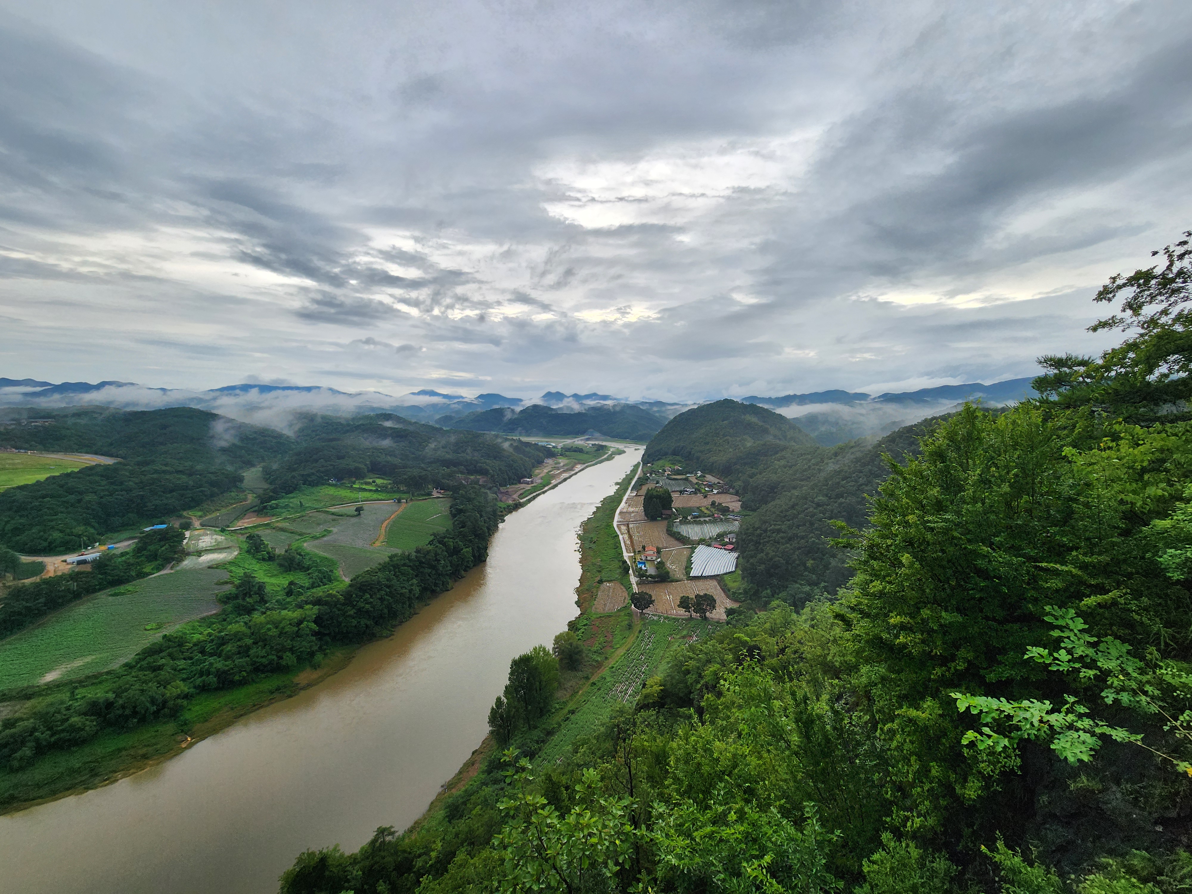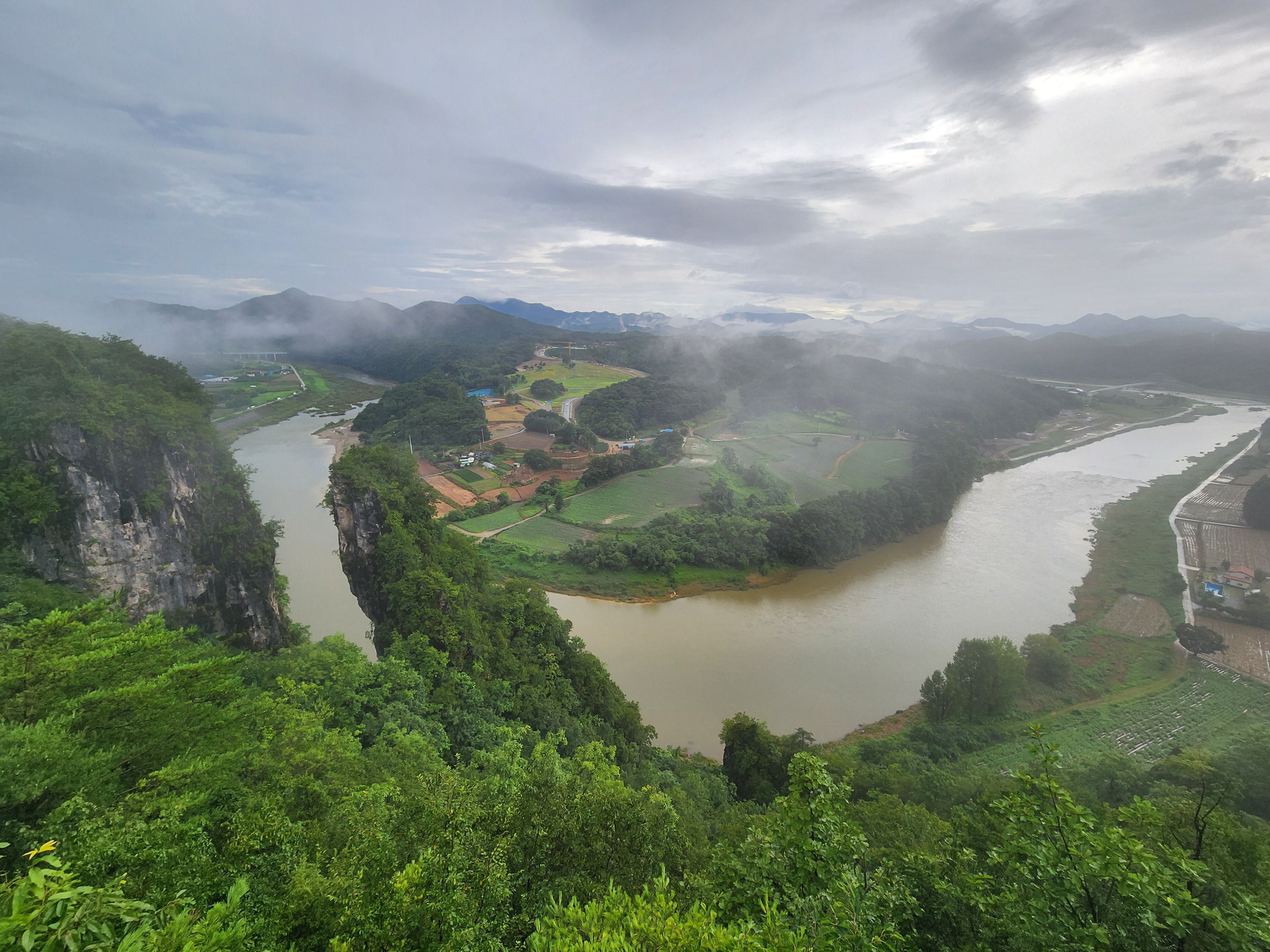 비 온 날 물안개가 피어오르는 사진을 공유합니다.